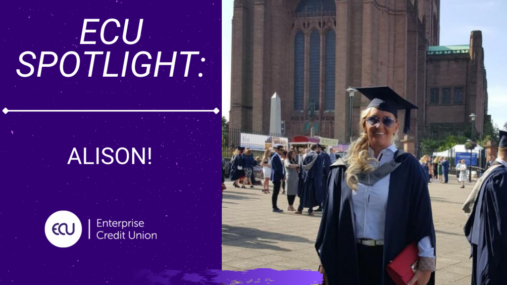 Alison says: “My life has completely changed, and Enterprise Credit Union has played a massive part in that!” We did provide a lifeline, but it was Alison’s hard work and determination that changed her future, and we’re super proud of how far she has come!