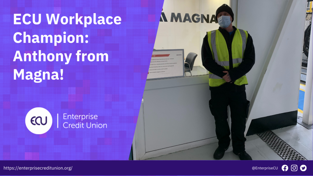 Since our visit, Anthony has introduced ECU to 14 of his colleagues, they are all now members of the credit union and are saving regularly through payroll deduction. Could this be you? If you think you could be your ‘ECU Workplace Champion’ we’d love to hear from you.