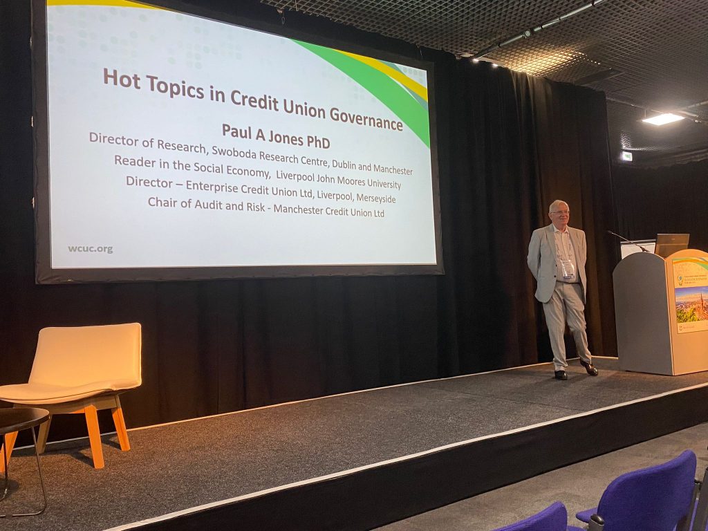 Last for Tuesdays events, but certainly not least, Team ECU were proud to watch one of our amazing directors, Paul Anthony Jones (Director of Research, Swaboda Research Centre) lead his very own session, as he discussed âHot Topics in Credit Union Governance.âÂ